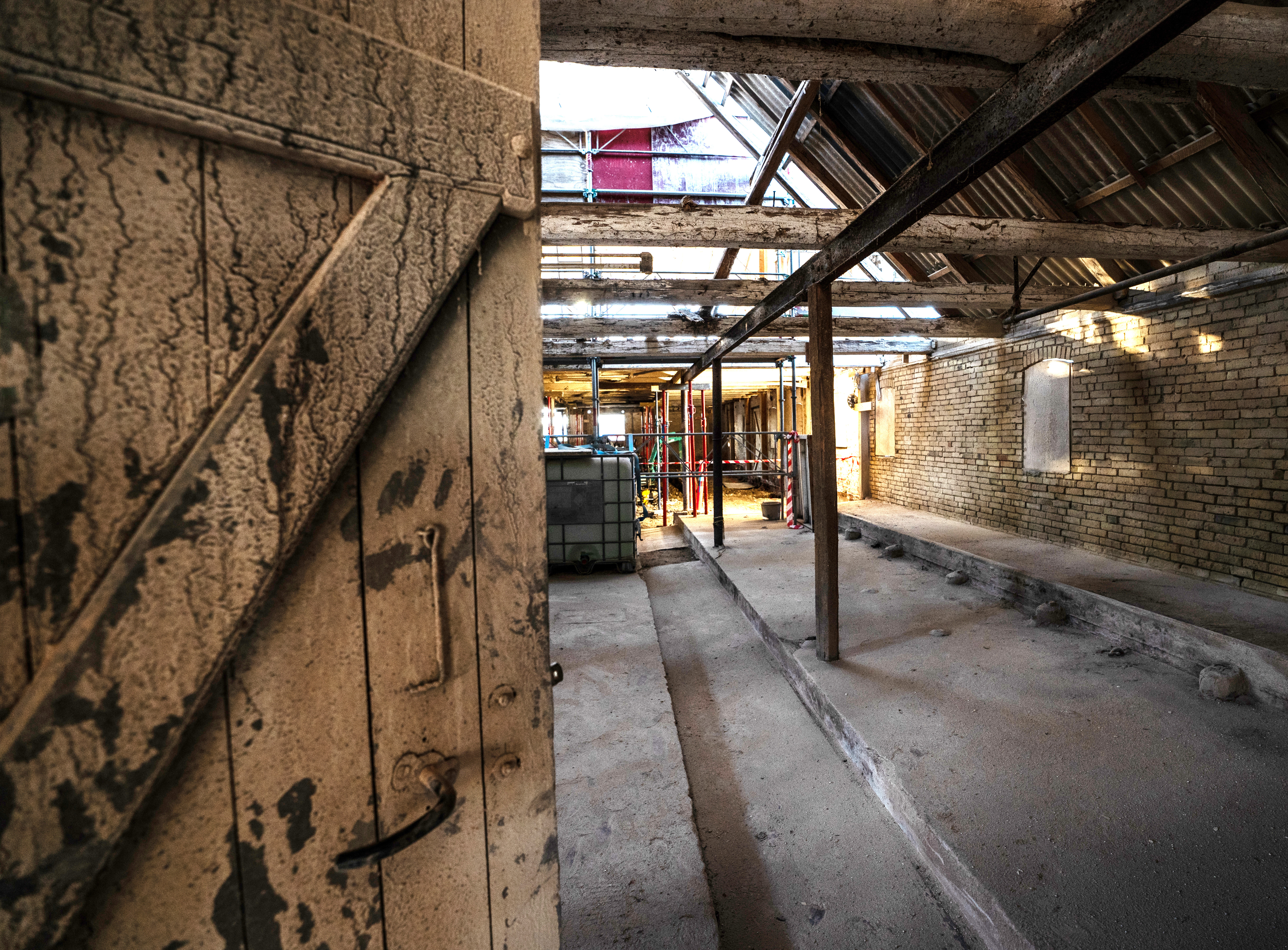 The roof structure was carefully taken down, thoroughly examined, and reassembled using a combination of old and new rafters. The old rafters come from the same building, donor buildings nearby, and new rafters and glulam where necessary.